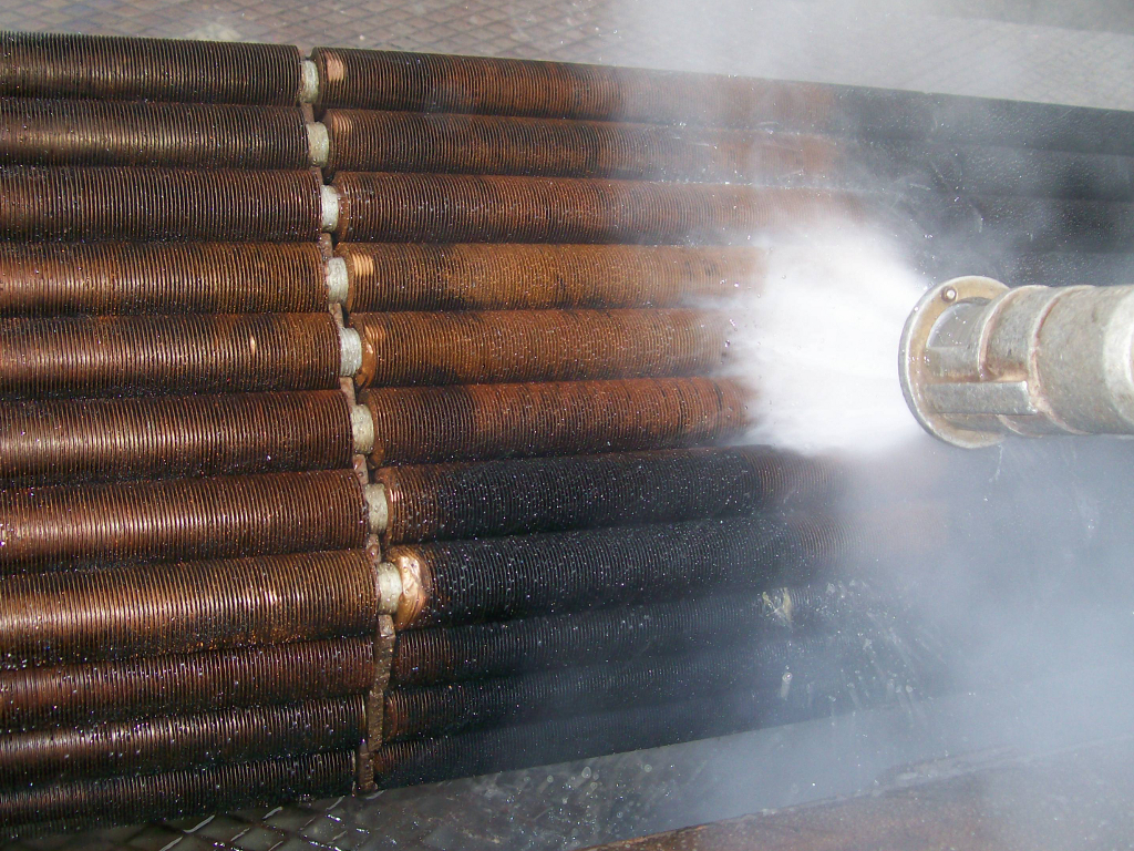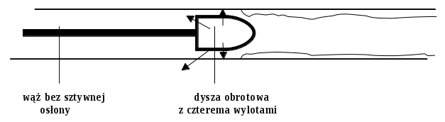 Metoda hydrodynamiczna (550 - 750 bar) z zastosowaniem dysz obrotowych, których kierunek wylotu strumienia wody umożliwia jednoczesne czyszczenie wewnętrznych ścianek rurki i ruch posuwisty dyszy w głąb rurki.